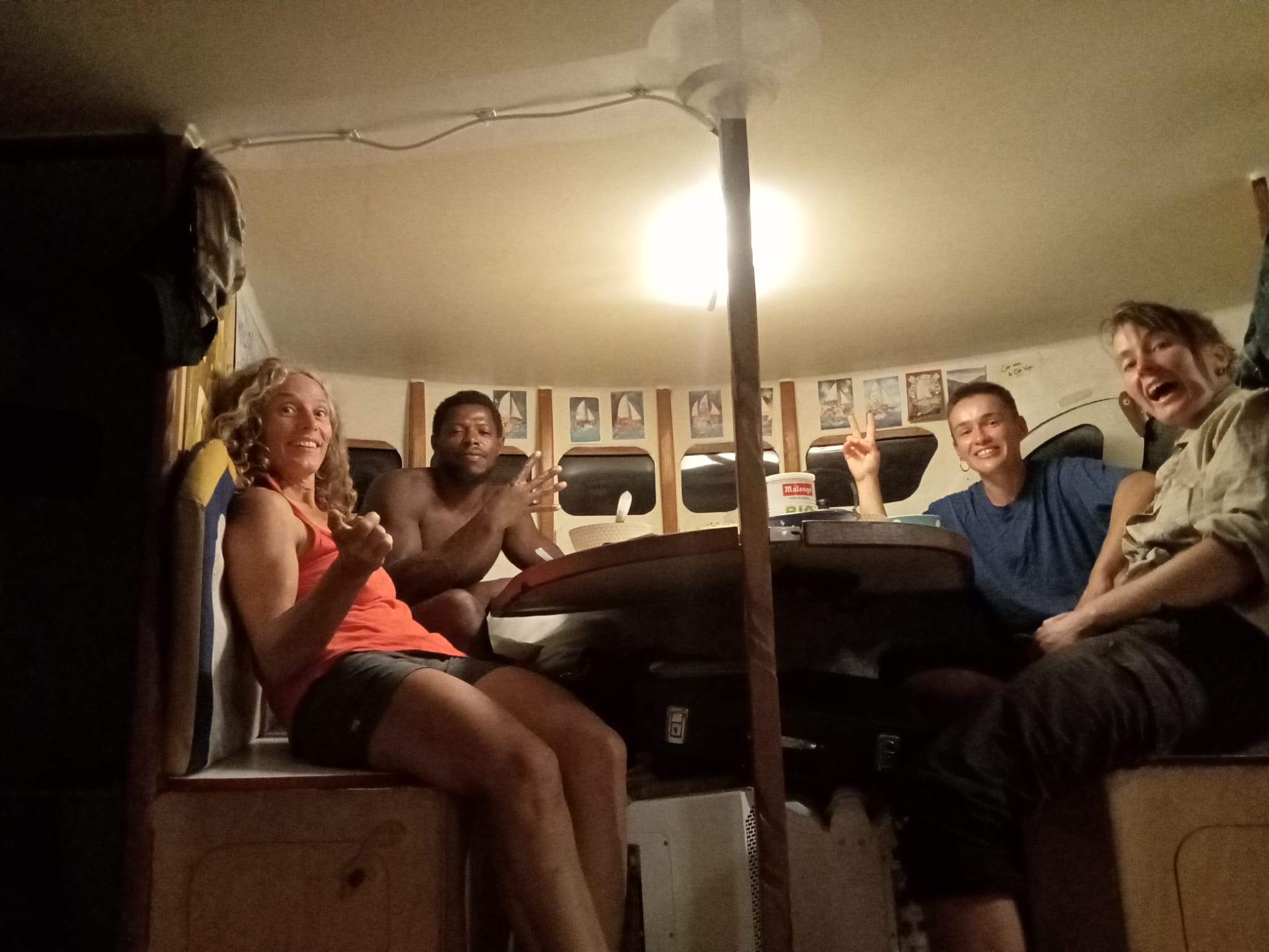 Nous filons nous mettre à l’abri dans la yourte. Nous passons tout les quatre un soirée étonnante par son contraste avec les événements précédents. Boissons chaudes, jeux de cartes, discussions et apprentissage du créole, repas. Alex repart en fin de soirée sur le kayak récupéré plus tôt. Il fait nuit mais la pluie a cessée. Dans l’obscurité tout semble normal. Avons-nous rêvé cette apocalypse ?